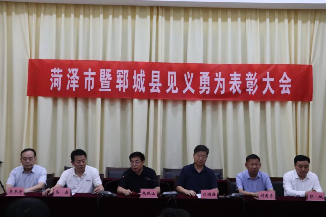 8月22日,菏泽市见义勇为模范、先进分子、积极分子表彰仪式在郓城县委举行。市见义勇为基金会理事长张乾山,市见义勇为基金会副理事长兼秘书长刘顺海,县委宣传部副部长刘考勇,县委政法委副书记李养涛,县见义勇为协会会长郭斌,县委政法委政法委员、县见义勇为协会秘书长夏盟,市见义勇为基金会、县委政法委、县见义勇为协会等有关同志及获得市级见义勇为荣誉人员和其所在单位、乡镇(街道)领导干部、群众代表参加。仪式由县委常委、政法委书记马磊主持。